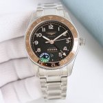 白 -金 钢带+50 DDD “双11”惊喜无限!浪琴特别推出全新 “隔玟瑰金礳砂陶瓷圈”先行者系列Zuiu Time 腕表! DDD 1直径42毫米,跟官网一样尺寸! DDD 2表圈饰有“绿、金、蓝、黑纹”礳砂陶瓷嵌件,标注24小时刻度和Super-Luminova荧光倒三角,指示第二时区的时间信息。 DDD 3盘面还装饰飞翼沙漏图案和五颗星星浮雕。并于6时位置设有日期视窗。 DDD 4蓝宝石水晶镜面略呈弧拱形,内外两面均经防眩涂层外理,双向旋转精密顺滑。该腕表配备易于抓握调校的旋入式表冠,而密封表背由