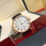 批白皮 玫 钢带20浪琴最新款 原装进口石英机 316L精钢表壳 矿物质超强玻璃镜面 进口真牛皮表带 女款直径30mm厚8mm