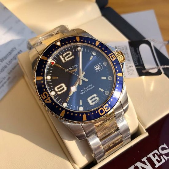 配全套 浪琴康卡斯系列男士腕表,浪琴中的黑水鬼,防水300米,潜水亲民款,表径41,自动机械,全新!这个表一直涨价,想入手的珍惜吧,赶紧下手,好品好价 全套包装 带保卡一表一卡 一标签吊牌 间金表带配蓝圈 DDD