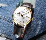台湾厂j5出品,浪琴,日月星辰系列,搭载定制版原装进口8217机芯 0返修0售后 ,24小时/真月相显示,4 5位日历显示。。双卜蓝宝石玻璃镜面,意大利牛皮,表径39X10M。5度防水!