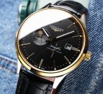 台湾厂j5出品,浪琴,日月星辰系列,搭载定制版原装进口8217机芯 0返修0售后 ,24小时/真月相显示,4 5位日历显示。。双卜蓝宝石玻璃镜面,意大利牛皮,表径39X10M。5度防水!