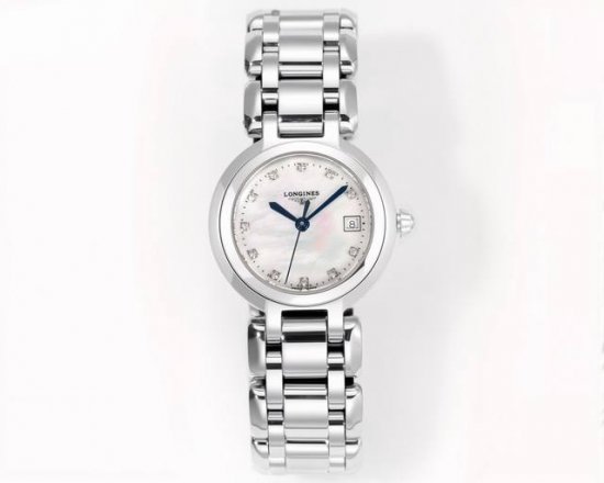 Kb出品。 浪琴 Longines 匠心之作 落落大方 腕间淑女] --浪琴表心月系列腕表优雅而至。典雅别致的外观,瑞士朗达石英机芯,走时精准,续航持久。 表壳]腕表尺寸26.5Mmx7.3Mm。圆润的曲线式设计使得壳体别致精巧。举手投足之间,落落大方。每一件表壳均是 Kb 的匠心精品。 机芯]和原装一致采用瑞士石英机芯。 钢带 波浪型的表带动感贴手,光泽流盼。每一粒表带截,都经过Kb制表师精心细致的打磨,确保光泽和形状完美无瑕,吻合原版。 表针]与原装一致采用烧钢蓝针。 表面 采用天然白贝母刻度镶嵌莫桑