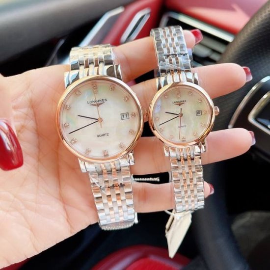 / Longines 浪琴、博雅系列__情侣款蓝宝石镜面直径:38Mm 28Mm进口石英机芯 天然贝壳表盘 904L钢 !