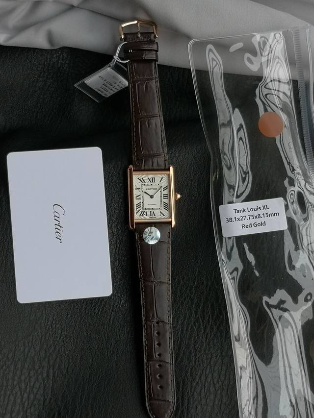F1 Factory2025 年度收官之作!原装1:1精密!最新一代卡家Tank Louis Xl Automatic 尺寸38.1*27.75*8.18Mm 腕表。配套定制亚版2899Mc全自动机械机芯!玫瑰金和黄金两个色,有牛皮和鳄鱼皮供客选择!。 2025年最新卡家Tank Louis Automatic 全新大号表款,延续矩形美学风格!这是近50年来第一款搭载自动上链机械机芯的Tank Lc腕表。 在美学设计方面,新款腕表与我们熟知并喜爱的上一代Lc系列基本一致:烧钢蓝时分指针,搭配经典的半哑光鳄