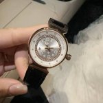 Lv路易威登,蓝宝石镜面,瑞士进口机芯,表盘中的Monogram花朵绝非仅是简单的装饰图案,而是此款腕表必不可少的关键元素。 花瓣镶嵌钻石,曲线与钻石的完美勾勒