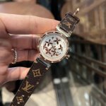 Lv Lv 路易威登,送女友首选又有货了,推荐哒,玻璃:蓝宝防刮镜面机芯:瑞士进口石英机芯尺寸:33Mm 厚度:12Mm功能:夜光,时尚配戴市场最高版本,一闪一