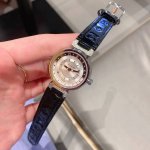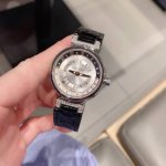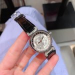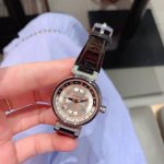 Lv Tambour新款的设计不同于其他任何腕表,表壳四周精心镌刻“Louis Vuitton”十二个字母,且与小时时标一一对应。相对较短的表耳,也别树一帜,不仅外观出众,而且佩戴舒适。路易威登还证明,大气精致表盘与旭日纹的搭配,可以带来独特的神奇观感,蓝宝33尺寸