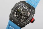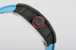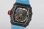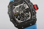 搭载Rmal1 自动上链机芯,摆频28800Vph,双发条盒提供55小时动力存储。由5级钛制作的机芯主夹板、桥板等经过pvd镀层的装饰,富有现代