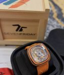 七个星期五橘色的整体颜色比想象中好搭配 刚开始可能觉得表盘戴着有点厚 自动上弦也方便很多走时也挺准 上手挺好看的橘色搭配衣服也比较显的年轻化 硅胶带就是出汗的时候比较闷 #配饰的尽头是长期主义