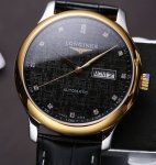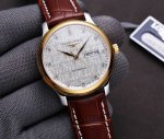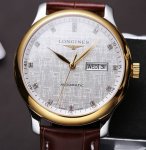 台湾厂出品,浪 琴 名匠男士系列 腕表尺寸39.811.9Mm。纤薄的圆弧型壳套 防水可达120米 ,壳侧身细腻圆润 质感十足 壳身严格按照品质开模 蓝宝石水晶
