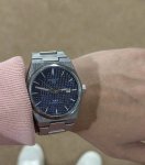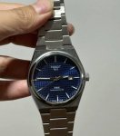 / 天梭的Prx是我最喜欢的系列,这块表我戴了也有小半年了,一直爱不释手。 精钢材质的表带和外观,银白色充满机械复古感。表盘是深蓝色,在光照下呈现由深蓝到浅蓝的渐变