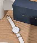女友复试通过啦 给她准备一个小惊喜 选的是这款Dw家的白色织纹手表! 她喜欢这款手表很长很长时间啦 直接拿下就当送她上岸礼物啦~ 腕表是经典百搭款 上手很显气质