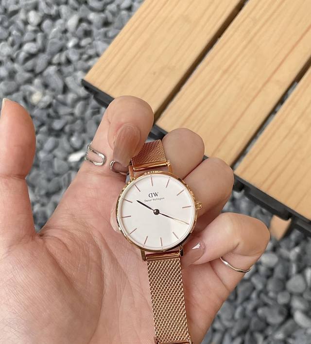 手表的全名是Dw月光白流金表,白色的表盘和金色的表带组合在一起,特别高级的配色~还赠送了一个Dw 520的限定粉色首饰盒,颜值高,有两层,容量够够的所以我就不需要另外购买啦嘻嘻~