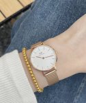 好朋友送我的梦中情表Dw DDD 收到表的那一刻,我发出了一声尖叫,因为真的太美太美了!! DDD 感谢我那沉鱼落雁的好朋友。戴在我手上显得手都变好看了 DDD 手表的全名是Dw月光白流金表,白色的表盘和金色的表带组合在一起,特别高级的配色~还赠送了一个Dw 520的限定粉色首饰盒,颜值高,有两层,容量够够的所以我就不需要另外购买啦嘻嘻~ DDD 我看是谁还没有艾特自己的好朋友送呀 DDD