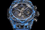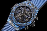 宇舶 恒宝 Big Bang系列碳纤维腕表限量登场 全新臻品限量典藏28枚,仅限中国地区 新款采用新型碳纤维材料表壳,由加入微玻璃的特殊碳纤维材质打造而成。宇舶表自制Hub1242机芯透过表壳清晰可见,非凡机械构造之美一览无遗。 Big Bang系列碳纤维腕表采用大胆的红蓝颜色,呈现出令人惊艳的强烈视觉冲击效果。内部精密机械结构透过剔透通过表壳清晰呈现,指针和时针刻度设计让整个表面发出强烈的节奏和建筑感,展现时间的非凡魅力。 腕表搭配两款表带可替换,包括同色系的织物运动表带及黑色结构化橡胶表带。此外,该款