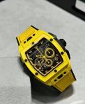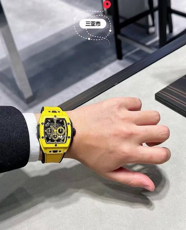 宇舶Hublot-全新彩色“陶瓷工艺” DDD 灵魂Big Bang系列 DDD 以赛车为灵感,推出全新Spirit Of Big Bang限量腕!腕表结合Spirit Of Big Bang系列的所有标志性元素,全新酒桶形全陶瓷表壳。表壳应用钛金属跟树脂材料,借助六枚H型螺丝构建“三明治”结构,传达“融合的技术”的理念,完美独家定制Hub4700机芯,原装折叠表扣,订制氟橡胶表带,腕表配有“一键式”快速更换表带系统,佩戴者只需轻轻一按,即可以轻松快捷地替换表带!!! DDD