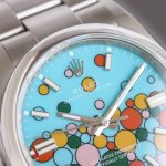 官方同步 还有更高品质 DDD Tw 劳家彩色蚝式恒动型 DDD 我们始终秉承高品质,超高性价比 DDD 造福广大表友! DDD 36Mm、41Mm都有,任君匹配!采用2824机芯走时稳定,字面颜色与原装无色差,条钉精工打磨,瑞士进口原材料冰宝蓝夜光效果,字面业内顶端印刷技术,原装一致超立体指针无毛边,表扣手感原装一致!所有细节拉满,店主强烈推荐 DDD