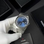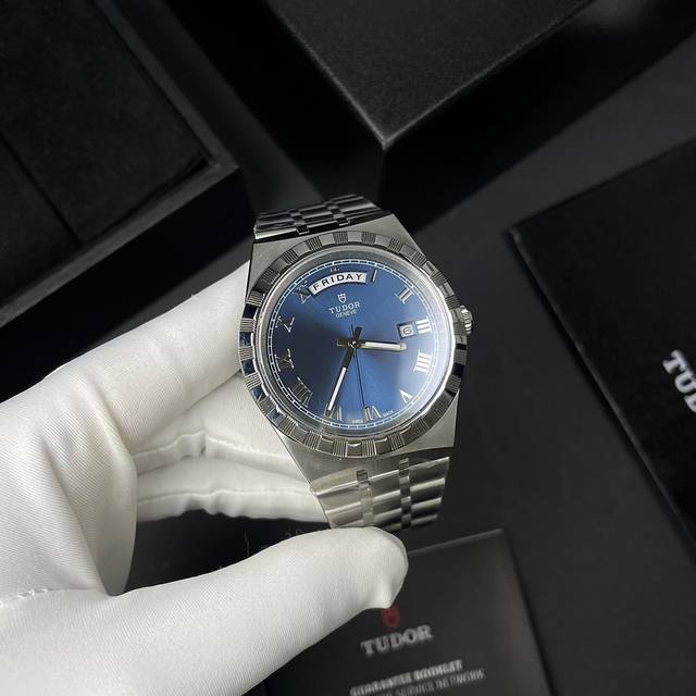 帝舵品鉴 皇家风范 新品上市,入手真香系列 DDD 强烈推荐西铁成机顶级做工天花板,专注质量,细节品控,兼具运动时尚与典雅奢华,灵活百搭,高性价比,全球代言人周杰伦同款,蓝色罗马表盘更是深受玩家们的喜爱。 DDD 表盘 外壳采用切割纹与磨光间隔,层次分明,星期日历、41Mm别致的太阳光表盘与官网一致,蓝、白、黑色和香槟金同步可选,搭配立体金属罗马数字 钻时标,附有夜光涂层,简约时尚的设计适合多种通勤场合。 DDD 表带 采用316精钢Cnc工艺,精工艺打磨,五链表带流畅贴合。 DDD 机芯 8285西铁成