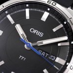 惊艳首秀 豪利时 Oris 赛车运动系列腕表震撼出击,表壳采用拉丝工艺处理 圆润的侧边结合抛光处理几乎达到了镜面效果 镜面采用双层蓝宝石镀蓝膜玻璃 字面采用上层