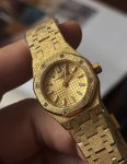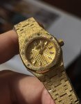 批 -Ap Mini Royal Oak 霜金款石英腕表!这款最近赢麻了,搭配高端珠宝饰品最好的Mini款腕表,叠戴尽显奢华。 DDD 谁能拒绝这块爱彼霜金迷你23Mm爱彼新出的这支皇家橡树67630Ba,把 贵气 展现到极致!表盘是细腻的沙金石肌理,光线底下会泛着细碎的光泽,格纹纹路和经典八角壳完美适配; DDD 全金表链做了磨砂处理,摸起来是低调的质感,不会像亮面那样显“俗”;把皇家橡树的硬朗和女性的柔美感平衡得刚好,抬手就是 毫不费力的贵 。是通勤能戴、约会能撑场的“全能款”,这波属于是把优雅刻进D