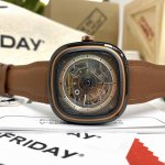 独家新款首发 现货sevenfriday 七个星期五手表机械男表t2 02 7周年全新之作新款比旧款更薄大小45.6X4 Mm 更符合国人手型 表壳枪金属色pvd处理316L精钢 线条质感明显 30米防水 机芯方面搭载日本镂空全自动机械机芯nh70 此机芯有40小时动能储存 K1强化矿物质玻璃 多层面渐变棕色半透明表盘设计 白色和卡其色印刷读数 指针带夜光涂层 棕色小牛皮表带加同色绣线 棕色内衬 佩戴舒适耐用 表背配有nfc芯片用于检验 配上全套专柜新款包装 背囊 送人自用都高大上