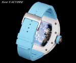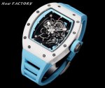 新厂-New Factory』Rm055最新升级V5 升级一体机芯版本原装一体双发条盒一体机芯,品质更加稳定机芯宝石非水钻也不是用胶水粘的经得住测试笔 “心”进口白色宝石手工镶一体的 DDD 1表壳:采用与原版一致白色陶瓷表壳,表壳导角细节改小与正品完全一致、底盖改小见光位,只凸出玻璃见光位、细节也是目前最对版本之一,升级几下几个细节,更像原装正品。 DDD 2机芯:重新开发原装Rmul2一体机芯,双发条盒机芯摆轮清晰可见会动。告别一眼假的夹板机芯。 DDD 3表径:尺寸与原版一致49.90X42.70毫