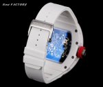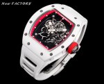新厂-New Factory』Rm055最新升级V5 升级一体机芯版本原装一体双发条盒一体机芯,品质更加稳定机芯宝石非水钻也不是用胶水粘的经得住测试笔 “心”进口白色宝石手工镶一体的 DDD 1表壳:采用与原版一致白色陶瓷表壳,表壳导角细节改小与正品完全一致、底盖改小见光位,只凸出玻璃见光位、细节也是目前最对版本之一,升级几下几个细节,更像原装正品。 Ddd 2机芯:重新开发原装Rmul2一体机芯,双发条盒机芯摆轮清晰可见会动。告别一眼假的夹板机芯。 Ddd 3表径:尺寸与原版一致49.90X42.70毫