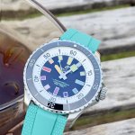 新款到货~此次新作为百年灵超级海洋彩虹盘腕表,外观方面更具时尚新潮魅力,表现出极致的美感和霸气 !标志性的棘轮式单向旋转表圈,镶嵌式陶瓷圈,表盘上设有黑白分明的读时分区,其中时标和指针覆以Super-Luminova夜光涂层,呈黄绿蓝靛紫红橙彩虹渐变效果,非常鲜艳。表带方面,百年灵提供绿松石、海蓝色、橙色和黄色橡胶表带可选,表带搭配精钢折叠式表扣。独立的编码和机芯对应专柜同码独一无二 , 搭载经瑞士官方天文台认证 Cosc 的自动上弦机芯 3.0米防水 ,官万+ 我们的价你懂的!同步专柜最新包装出货! D