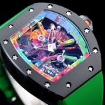 理查德.米勒 Rm 1 ,我来自涂鸦大师,此款腕表是来自 涂鸦大师Cyril phan 创新之作。就让此款腕表陪着大家跨向色彩缤纷的 五颜六色 走在潮流最前线 Richard Mille 特别版 突出,个性特别 独一无二 带上手 一级棒的感觉与体验 欢迎来品尝此款 腕表,造型霸气不羁,具有震撼人心的魅力。搭配艳耀色彩的真皮轻便表带,更拉风,更前卫。缤纷盛夏,换上短袖T恤的你,腕间搭上鲜艳的表款,是不是很吸睛搭配着一体机 专柜同步顶级复刻 真实展现!!!