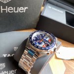 新款高颜值已上线。Tagheuer 泰格豪雅F1系列Gulf石英男士钢带腕表 ,原单货!六针计时带日历!瑞士原装石英机芯!别具一格!专柜售价一万多!~43Mm表径!配专柜全套包装!