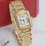 最新推出2023年全网最新第2代tank Francaise法国坦克真钻女士腕表!表壳镶嵌22颗2.1超大钻石 约0.7克拉,配国检机构检测证书!一物一证一表一码。表盘尺寸小号25.7*21.2Mm。 “一体手镯式”作为tank系列的核心元素,第2代对表壳、表冠、表链、表盘设计细节均进行改进,整体风格更加现代!新作表壳和表链均采用进口316F精钢打造。机芯采用瑞士进口石英机芯。表壳尺寸比旧款略微增加,表链链节比例也经过重新设计,均采用大面积的拉丝缎面工艺,表壳和表链浑然一体,极其连贯的线条,优雅利落!一体