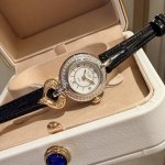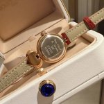 梵克雅宝 Charms Gold系列Van Cleef& Arpels经典腕表作Charms,以一枚幸运吊饰妆点流丽圆浑的线条,呼应世家自1920年代至今魅力不减的吊饰作品,随手腕轻摆,让光影曼舞于表壳之上。愉悦灵动的光影舞步令人每天沉醉在喜乐的时刻中,让幸福随指针的脉动迸发。新作品秉承 Harms系列的经典美学传统,迷人的白色彩漆表盘饰有扭索纹,以呼应旋转吊饰的弧线。表圈糅合传统抛光及磨砂润饰效果,捕捉微妙跃动的光影。最后, Van Cleef& Arpels梵克雅宝经典藤蔓主题以英文书法镌刻于表壳外侧