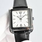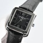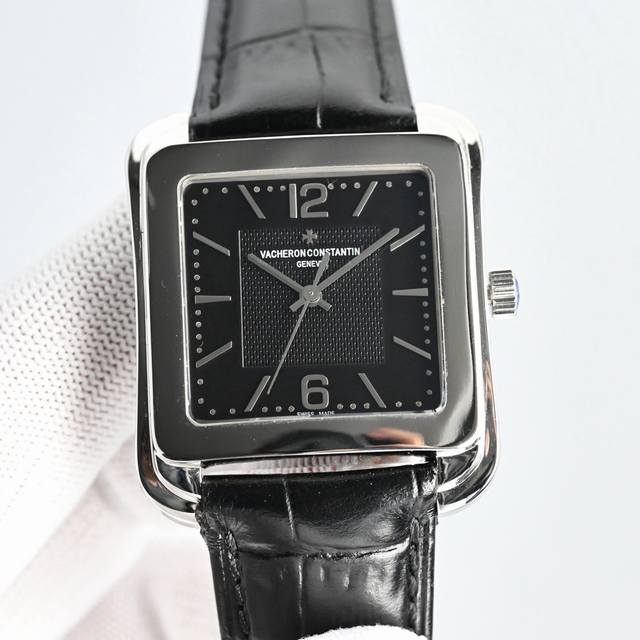 光泽亮丽的方形外壳,内衬简洁的麦穗面盘,搭配意大利小牛皮表,最大限度还原的艺术感官。