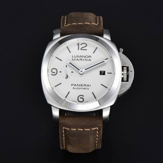 沛纳海--Nerai 类型:男士顶级腕表 机芯:有全自动上海机械机芯 表壳:316L精钢表壳 镜面:矿物强化防摔玻璃 皮带:真牛皮表带 尺寸:直径44Mm, 厚