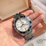 海马系列海洋宇宙 M同轴 至臻天文台42Mm潜水表。顶级版本 支持任意对比!搭载独有的原版一致8800机械机芯,漩涡形结构摆轮,与原版一致!精钢材质拉丝表壳 局部抛光处理。表圈采用陶瓷设计,饰以白色珐琅潜水刻度,棘轮式倒计时表圈逆时针单向转动 穹型蓝宝石镜面镀防眩光膜 抛光陶瓷表盘,激光镌刻波纹图案,6点钟位置设有日历窗口,镂空指针和浮雕小时刻度经镀铑处理,并覆以Super-Luminova夜光涂层。多重防水旋入式表冠,圆锥形造型排氦气阀门。精钢拉丝表带,表带拆卸方式和一样为两侧螺丝,中间独立固定杆设计带