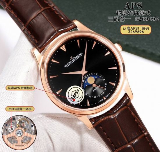 特惠,Aps厂出品,最高版本,热门潮流时尚大方款式,定制三码合一版本!积家 Jl 月相大师系列 携手超薄真真正正的一体机芯,真齿轮转动,限时返场