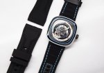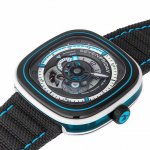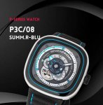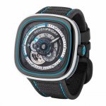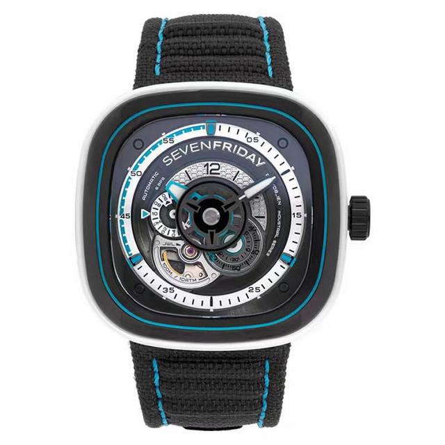 独家新款 七个星期五Seven Friday C08 全自动机械表 大海 沙滩 夏天 色彩斑蓝点燃你夏日的超酷行头 手表采用精钢与塑胶的设计相结合 不透明黑色与水蓝色透明动壳身 就像透彻的海水跟跟深不见底的海底一样,多层次的表盘设计 让个性鲜明 运动范十足,采用日本进口全自动机械机芯,稳定,40小时的动力存储,小牛皮表带 卷边工艺 表面采用帆布材质搭配蓝色绣线,黑色牛皮内衬,30米防水结构,配套全套包装 送人自用也是不错选择。 DDD
