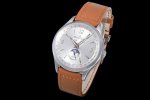 Tw Factory 积家jaeger-Lecoultrebn5 推出 Master Calendar日历大师1558420系列腕表,Tw Factory 聘请制表师傅通过两年无数次测试,期间损坏机芯上百个,从星期,月相,到日历,月份,一一还原正品制表特质,以稍作不同的方式展现其隽永魅力! 推出新品 积家日历大师1558420系列,腕表十二点位置两个窗口分别显示星期和月份,腕表在6点钟位置的副表盘可读取月相显示,边缘位置则显示时钟!腕表前后均采用蓝宝石水晶玻璃,皮带采用进口意大利牛皮,表扣
