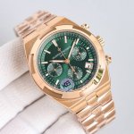 江诗丹顿 Overseas 纵横四海腕表 升级版v3耗时12个月打造出来的精品 精钢表壳,直径 41Mm,蓝宝石水晶表镜表背,7750改5200自动上链机械,摆频28800次 小时,精钢表扣,防水150米。最后一定要赞赏的是全新的 可更换表带系统 ,新 Overseas 只需要拨动表带和表耳之间的一个小划杆就可以拆换表带,每一枚都可选钢带、胶带,皮带,一表3带,真正做到1:1复刻