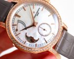 腕表搭载由江诗丹顿自主研发并制造的机芯,动力储存约72小时,可为小时、分钟、小秒针及月相盈亏显示功能提供充足动力。