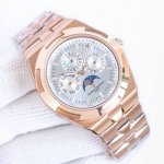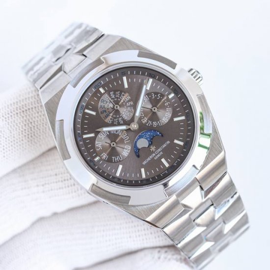 白 金 江诗丹顿 Vc 纵横四海系列 披星戴月 砥砺前行 升级版到货 Overseas纵横四海4300V系列万年历腕表 腕表采用直径41.5毫米的表壳,搭载自动上链机械机芯 Qp1超薄机芯,该机芯配备万年历和月相显示。 9字位星期、3字位日期、12字位月份 经旭日纹缎面拉丝处理的金质表盘 以蜗形纹装饰的小表盘清晰易读 搭配造价不菲的指针相得益彰 每一枚腕表都可以配戴一键快拆式钢带 胶带 皮带 欢迎鉴赏精致推荐男士多功能机械腕表 DDD