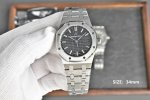 白 -金 钻+50 最新女款Ap 爱彼皇家橡树系列77350 77351型号机械腕表!直径34Mm。搭载Calibre 5800自动上链机芯,采用该款式特别设计