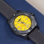 百年灵经典复仇者系列,它有个响亮的名字:黑鸟侦察机,表盘尺寸44Mm,最吸引人的当属它的外壳,深枪色的壳套镀层采用真空离子电镀技术,也就是用高压把颜色压金钛合金里,这样既增加了镀层的密度,钛金属本身的硬度可以使腕表具备克服一切艰难环境的素质,永不掉色!!钛壳钛壳钛壳!重要的事情说三遍!字面采用黄色喷涂效果叠加印刷工艺,侧看会有微微隆起的立体感觉,镜面弧形蓝宝石玻璃,双面浅蓝色高透镀膜,效果绝不重影,烟煤色Military军用防水皮带,愿意进口瑞士机械机芯,支持拆机验货!假一赔三,这个属于经典款,市面上装国