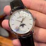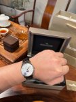 积家月相大师携手超薄一体机芯限时返场!!! Ddd 直径39Mm同步原装,流线型精钢表壳保驾护航,左右侧面有日历和月相调节按钮。把头的Logo浮雕明晰有力,并且整只表壳进行了抛光处理,表耳弧度天然。 Ddd 表盘布局简约而不简单,六点位置的小表盘有月相和日历两种功能,功能与原版一致。 Ddd 阴阳面指针做的非常到位,指针左右两头对称分开别离选用了不同的表面处理工艺,一半磨砂一半抛光。 Ddd 背透设计,精钢和蓝宝石搭配成的底盖,由四颗一字口螺丝固定。底盖上的积家标志以及手表编号都镂空细腻深刻。 Ddd 本