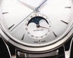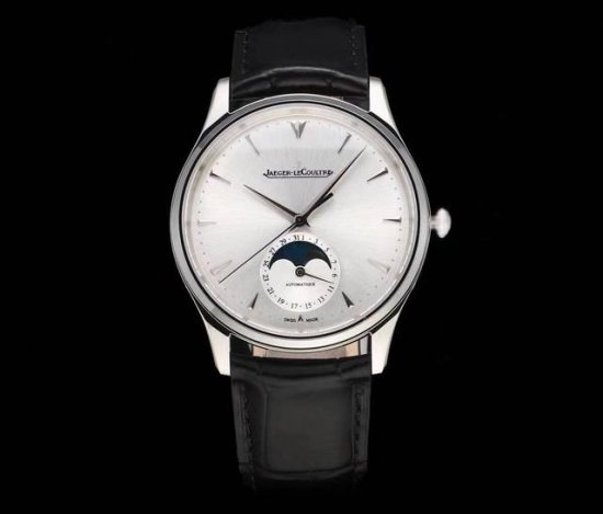 积家月相大师系列正装男表Q1368420. 表壳直径39Mm,厚度9.9Mm 技术要点』:一,月相盘 一个月走一圈 逐个逐个使用Cnc精雕成型,完美还原原装的立