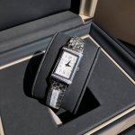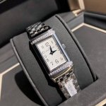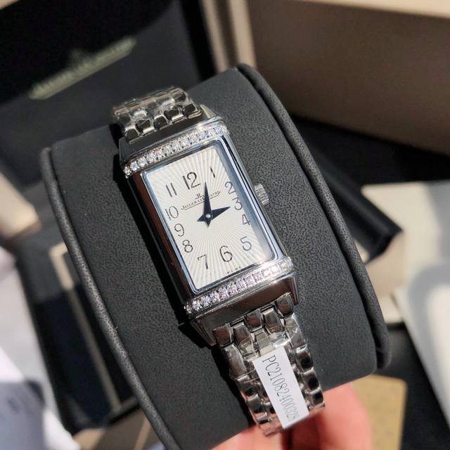积家翻转腕表,表盘镶嵌26颗Vs级足反钻石。附Gtc检测证书。一表一证。搭载瑞士进口石英机芯。进口德国316升级版精钢款 采用细腻纤长的线条设计,纯手工拉丝工艺。惊艳醒目的长方形设计,让人一见倾心。它用柔美与大胆演绎 Reverso One 翻转系列。缔造出充满个性的时尚之作 新款女士 Reverso One 翻转腕表。魅力难挡。矩形表壳、经典装饰刻纹、优雅的阿拉伯数字时标、太子妃式指针以及漆面表盘周围点缀以两排明亮式切割钻石 以 Jaeger-Lecoultre 积家代表性装饰艺术风格重新演绎了经典表款