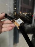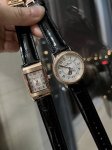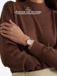 积家腕表温润典雅的玫瑰金表壳与简约纯美的银色表盘和谐成韵,配以黑色皮表带,质感高级细腻,为都市丽人增添优雅迷人魅力。
