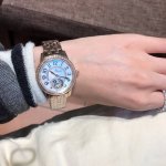 / 积家rendez-Vous约会系列 全自动机械飞轮女士腕表,由天然深海珍珠贝母打造的表盘与精钢镶钻表圈交相辉映,散发着柔和的七彩光泽,而位于六时位置的飞轮则如优