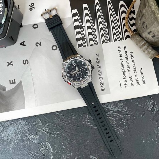 / 终于到货!卡西欧 G-Steel运动手表男Gst-B100-B100D X Xa-1A B200 六针运动手表 钢带款 尺寸54Mm 双时间显示 秒针计时 整点