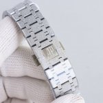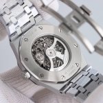 男士机械腕表 Calibre 3132一体机芯,41Mm直径,厚度9.9Mm深灰色表盘形状:圆形表盘材质:镂空表盘,搭配玫瑰金荧光立体时标和皇家橡树指针表镜材质:防眩光处理蓝宝石水晶玻璃表镜表冠材质:精钢,旋入式表冠背透:背透,防眩蓝宝石玻璃镜面